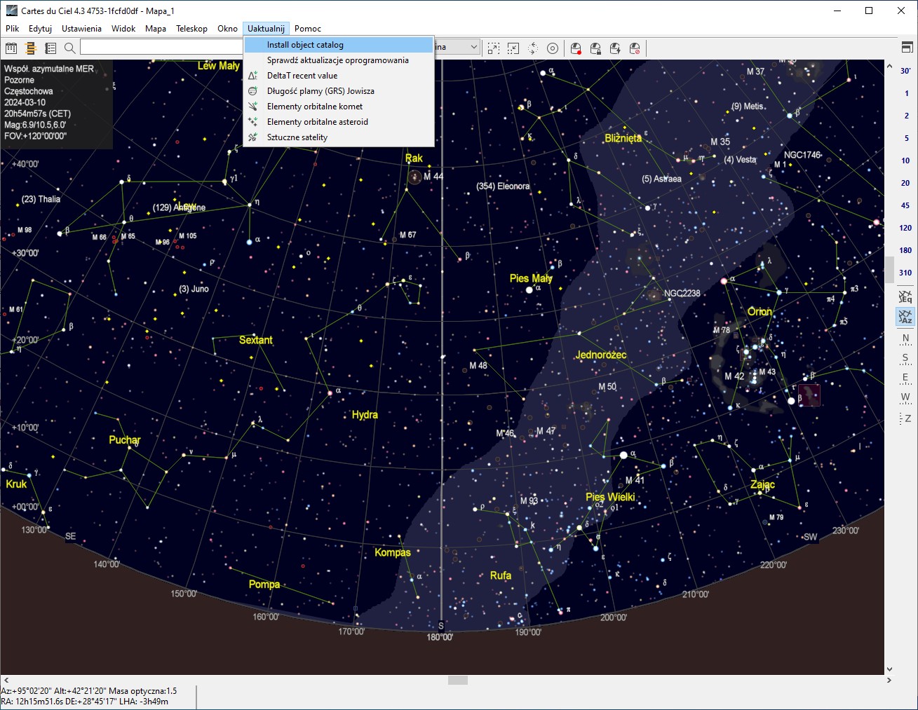 The Cartes du Ciel (Sky Charts) - instalacja katalogu gwiazd UCAC4 z poziomu programu dla wersji programu 4.3.x